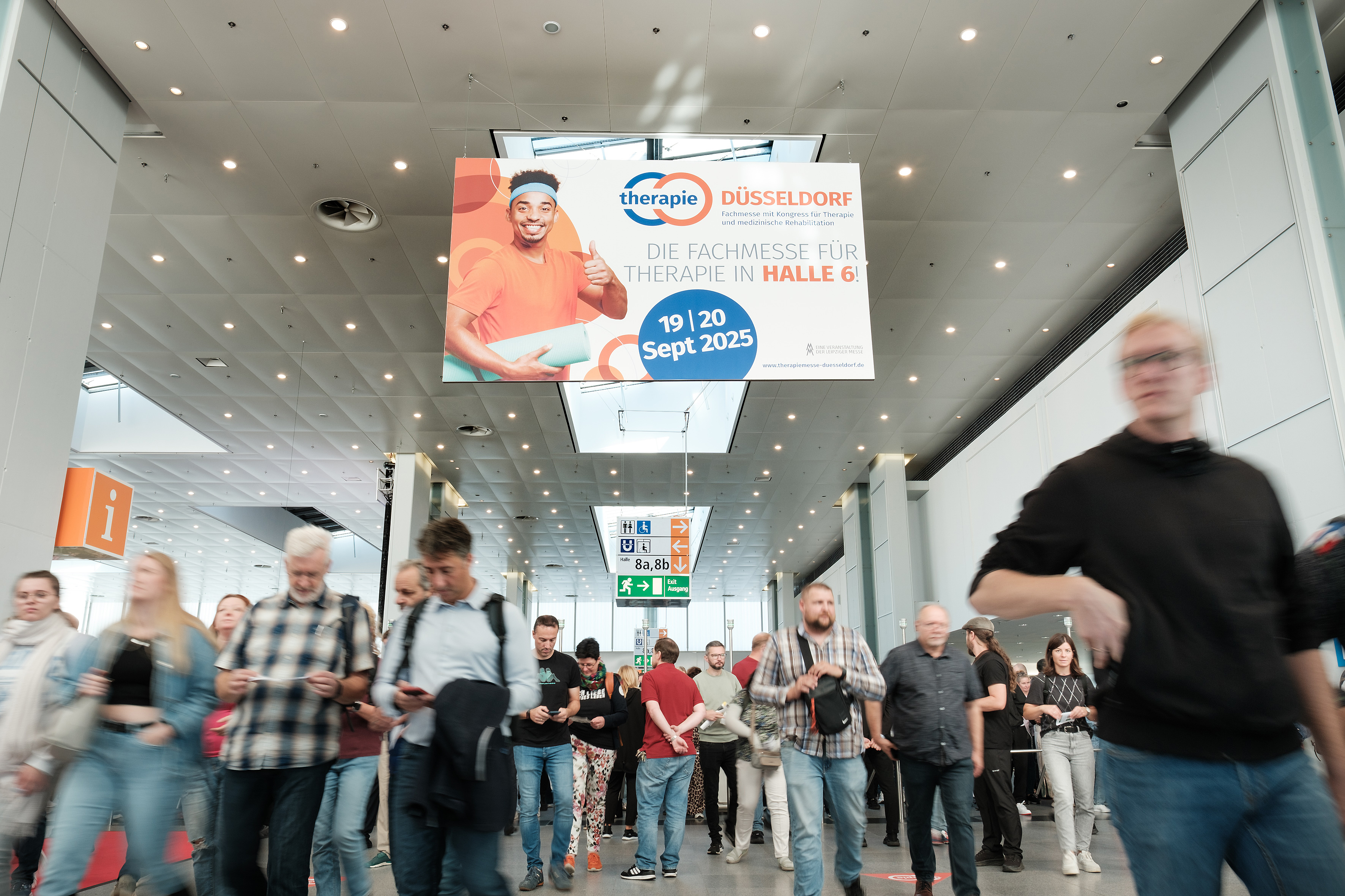 Ob in Anzeigen, Broschüren, Einladungen oder auf der Website: Das Logo der therapie DÜSSELDORF weist aufmerksamkeitsstark auf eure Beteiligung hin.